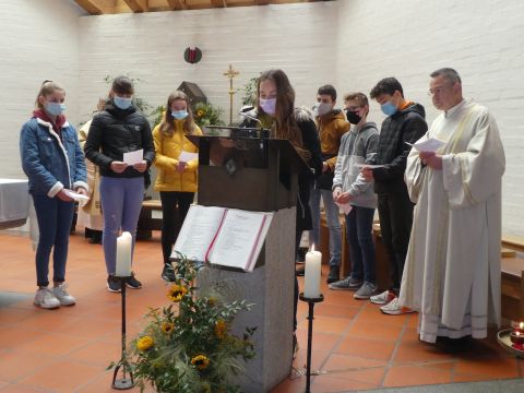 Am Kirchweihsonntag fand ein Gottesdienst mit den Firmbewerbern statt. In seiner Predigt lobte Diakon Michael Weigl die Jugendlichen, dass sie sich firmen lassen und als junge Christen entschieden leben wollen. Dazu benötigen sie Kraft, die sie durch die Firmung erhalten.