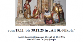 Die Pfarrei Mariä Heimsuchung Altdorf lädt zur Krippenausstellung in „Alt St. Nikola“ ein. Eröffnung am 15. November ab 18:15 Uhr durch Pfarrer Dr. Josy Joseph.