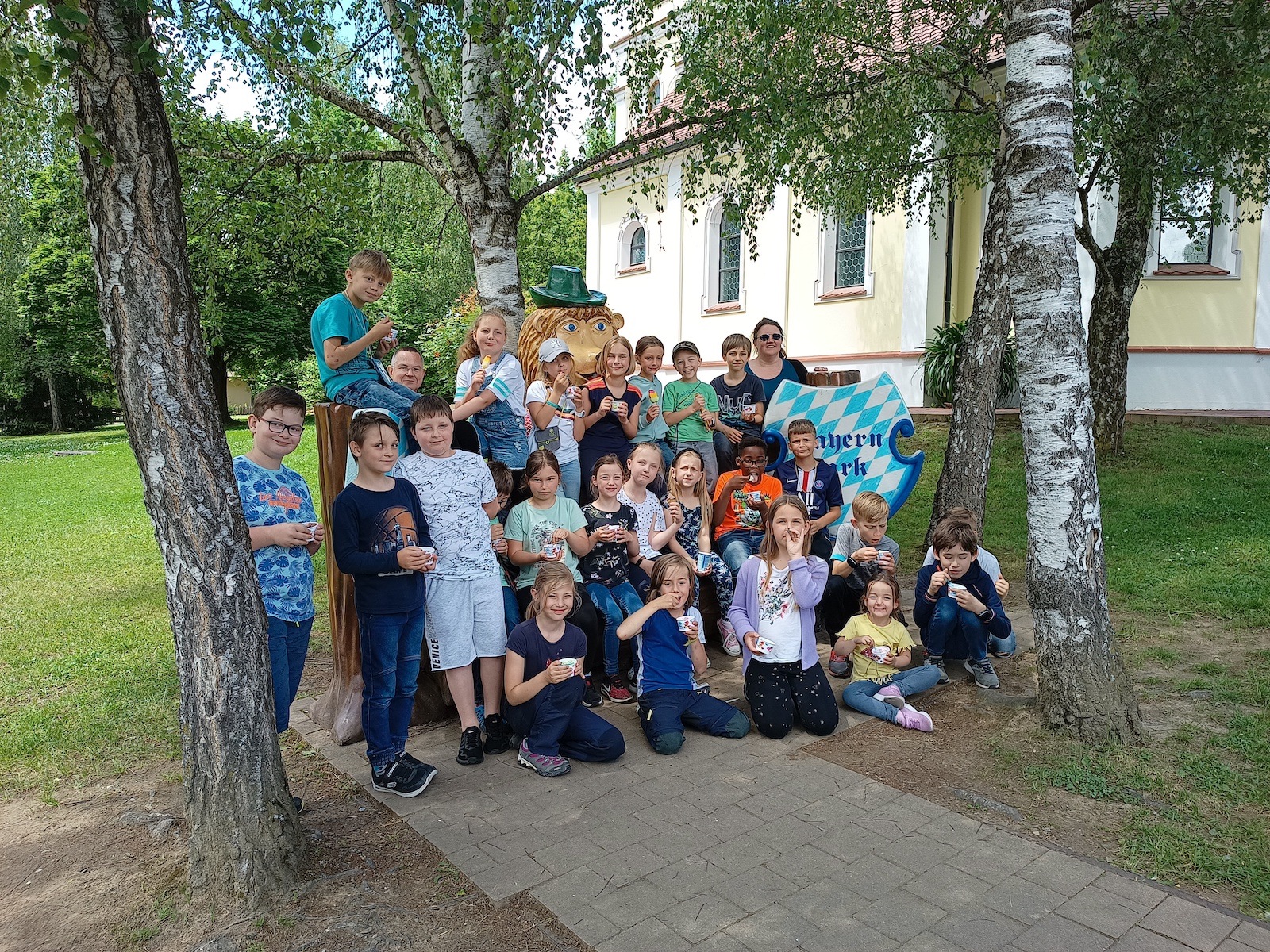 Dieses Jahr konnte endlich wieder ein Kommunionausflug stattfinden. Am Freitag, 27.5. war es soweit, die Altdorfer Erstkommunionkinder fuhren gemeinsam mit ihren erwachsenen Begleitern, darunter Pfarrer Josy Joseph, Diakon Weigl und Gemeindeassistentin Karin Beimers in den Bayernpark bei Reisbach. Bevor es losging, feierten alle gemeinsam in der Neuen Nikolakirche einen Dankgottesdienst, bei dem nochmals an die Freundschaft mit Jesus erinnert wurde. Bei perfekten Wetter, nicht zu warm aber sonnig und trocken, konnten sich die Kinder einen ganzen Tag lang bei den zahlreichen Attraktionen und Angeboten austoben.
