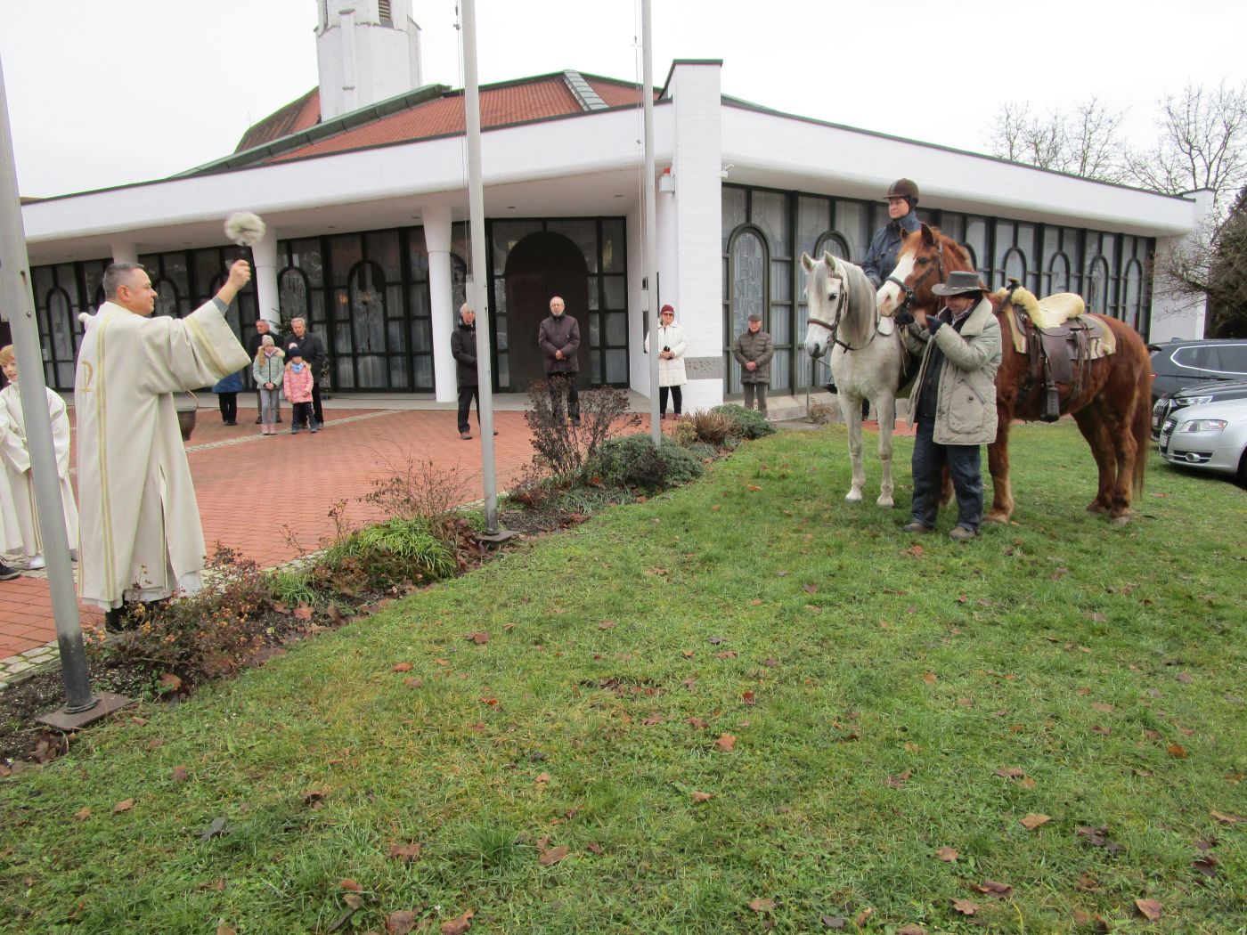 Die Segnung am Stephani-Tag auf dem Vorplatz der Nikola-Kirche nahm diesmal Diakon Michael Weigl vor, der hierbei von der Gemeindeassistentin Karin Beimers und den Ministranten begleitet wurde. Seine Segens-Gebete verband er mit dem Wunsch, dass die Reiter und Vierbeiner ganzjährig einen unfallfreien Reitsport haben mögen. Heute als Arbeitstiere kaum noch im Einsatz, sind Pferde jetzt um so mehr im Reit- und Freizeitsport gefragt.