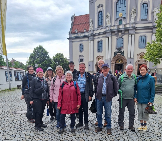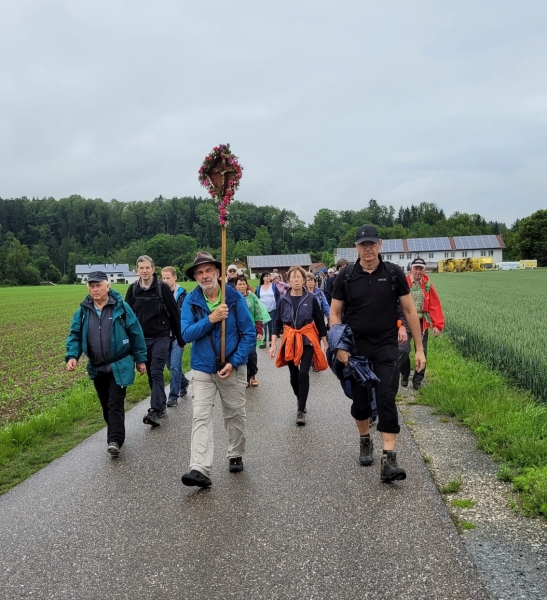 Altdorf. Am Pfingstsamstag machten sich rund 70 Pilger auf den Weg zur Muttergottes nach Altötting. Angeführt von Pilgerführer Helmut Maier ging es bei teils regnerischem Wetter betend über Wald- und Wiesenwege von Neumarkt-St. Veit über Stetten nach Isensee. Dort versorgte die KLJB Altdorf die Pilger zur Mittagspause bestens mit Leberkässemmeln und Kuchen sowie Getränken. Die letzten Kilometer führten am Inn entlang nach Neuötting und schließlich ans Ziel der Wallfahrt, der Gnadenkapelle in Altötting. Nach dem mit Glockengeläut begleiteten, feierlichen Einzug, der für die Pilger immer ein eindrucksvolles Erlebnis bedeutet, fand auch in diesem Jahr wieder ein gemeinsamer  Festgottesdienst mit den Gruppen aus Gündlkofen-Oberglaim, Essenbach und Bruckberg in der Basilika St. Anna statt.