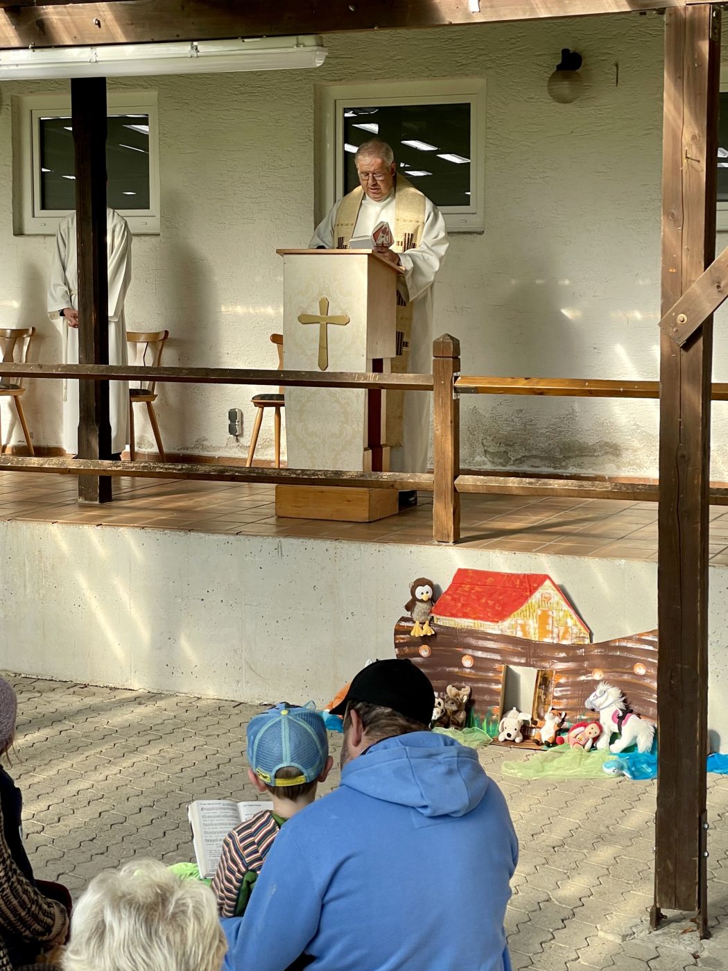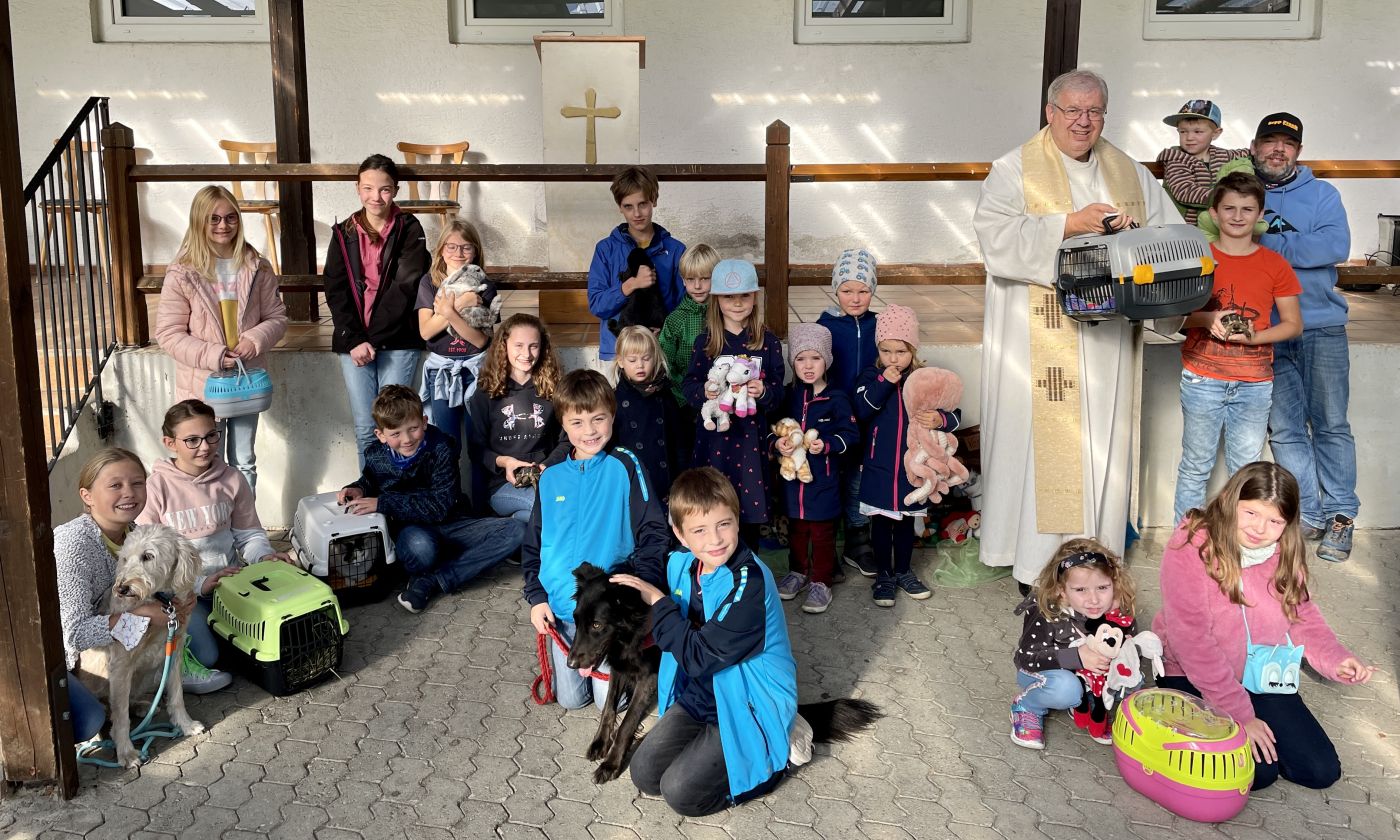 Das Familiengottesdienst-Team der Kuratie Pfettrach / Arth hat daher zusammen mit Pfarrer Peter Nußbaum eine Tiersegnung geplant, welche am 10. Oktober am Sportheim des SC Pfettrach stattfand. Der Wert der Schöpfung, insbesondere der Tiere, sollte damit ins Bewusstsein gerufen werden. So durften auch gerne Kinder, die kein eigenes Tier besitzen, mit ihrem Kuscheltieren kommen. Insgesamt konnten zahlreiche Hunde, Katzen, Hasen, Meerschweinchen, Mäuse und Schildkröten mit ihren Besitzern begrüßt werden.