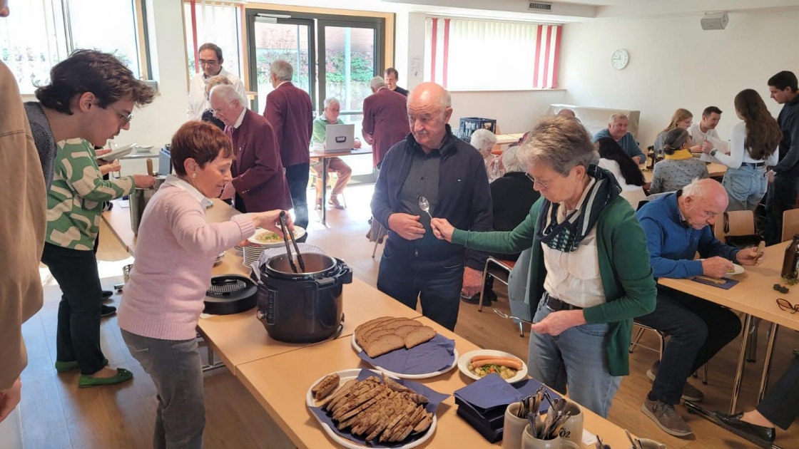 Im Anschluss lud die Pfarrei zum traditionellen Fastenessen in den Pfarrsaal ein. Bei einem herzhaften Linseneintopf mit oder ohne Würstchen und frisch gebackenen Waffeln der Ministranten kamen zahlreiche Gemeindemitglieder zusammen. Ein besonderer Höhepunkt waren die gezeigten Bilder der Pilgerreise nach Indien.