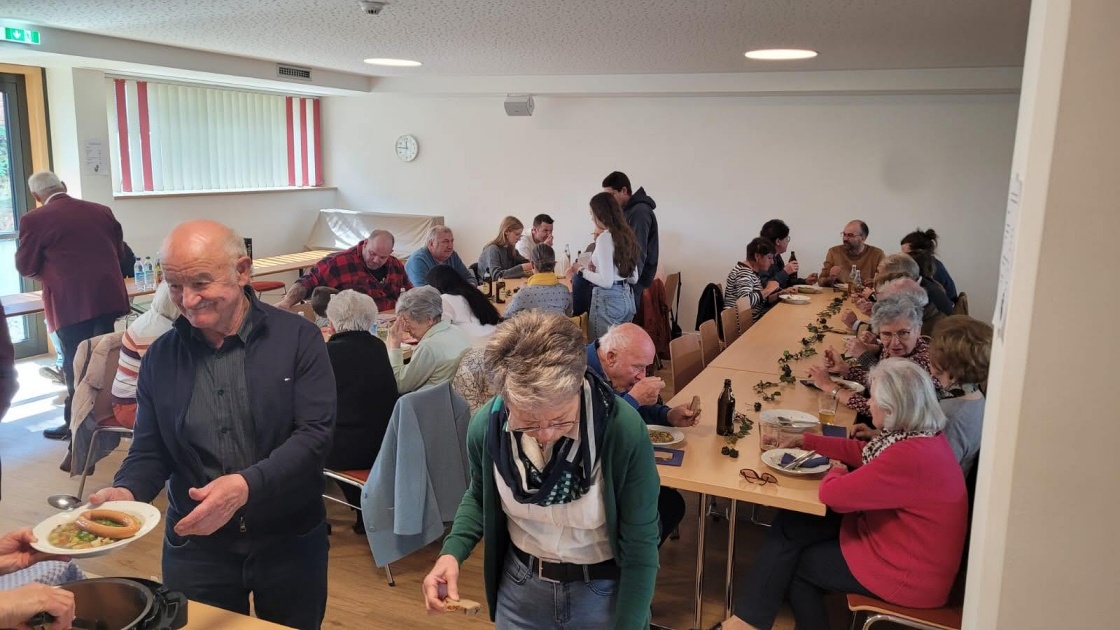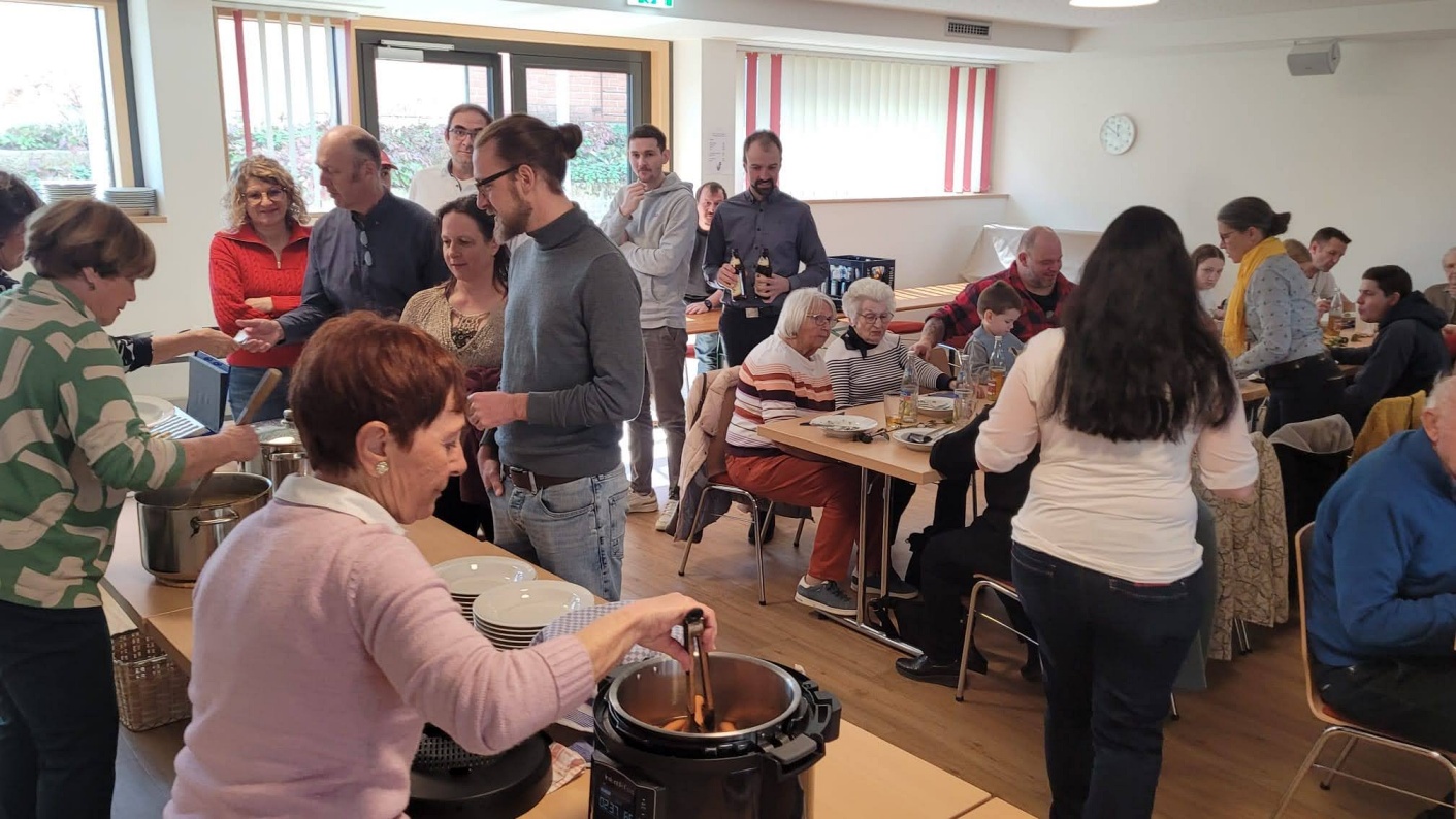 Im Anschluss lud die Pfarrei zum traditionellen Fastenessen in den Pfarrsaal ein. Bei einem herzhaften Linseneintopf mit oder ohne Würstchen und frisch gebackenen Waffeln der Ministranten kamen zahlreiche Gemeindemitglieder zusammen. Ein besonderer Höhepunkt waren die gezeigten Bilder der Pilgerreise nach Indien.