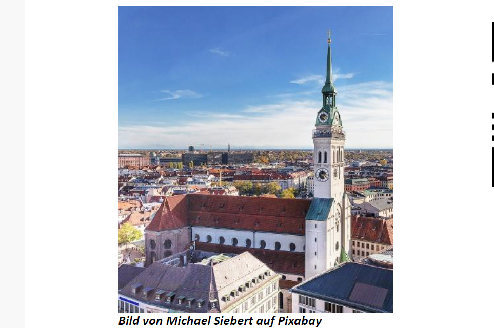 Am 11. Oktober lädt die Pfarrei Altdorf herzlich zur Fahrt nach München ein. Nach einem gemeinsamen Mittagessen erwartet die Erwachsenen eine spannende Führung durch die Peterskirche – eine der ältesten Kirchen der Stadt, deren Turm als „Alter Peter“ weithin bekannt ist.